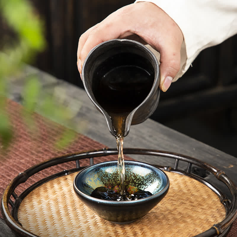 Vintage Chinese Silver Blue Jianzhan Kiln Change Porcelain Teacup Kung Fu Tea Cup