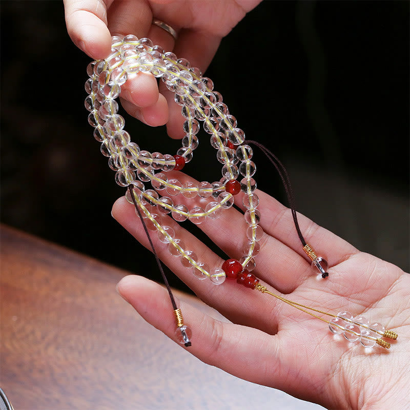 108 Mala Beads 925 Sterling Silver Natural White Agate Red Agate Quadruple Wrap Protection Bracelet
