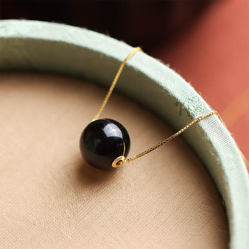 925 Sterling Silver Amber Round Bead Confidence Focus Pendant Necklace