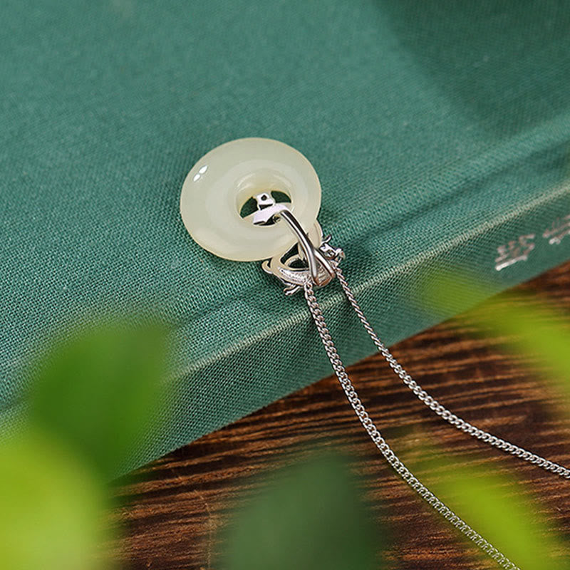 925 Sterling Silver Hetian Jade Peace Buckle Koi Fish Luck Necklace Pendant