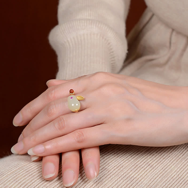 925 Sterling Silver Year of the Rabbit Hetian Jade Luck Ring Earrings Necklace Pendant