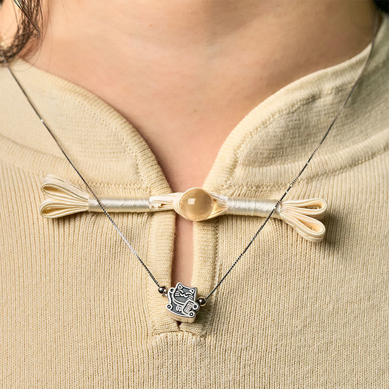 999 Sterling Silver Fortune Cat Protection 925 Sterling Silver Chain Necklace Pendant