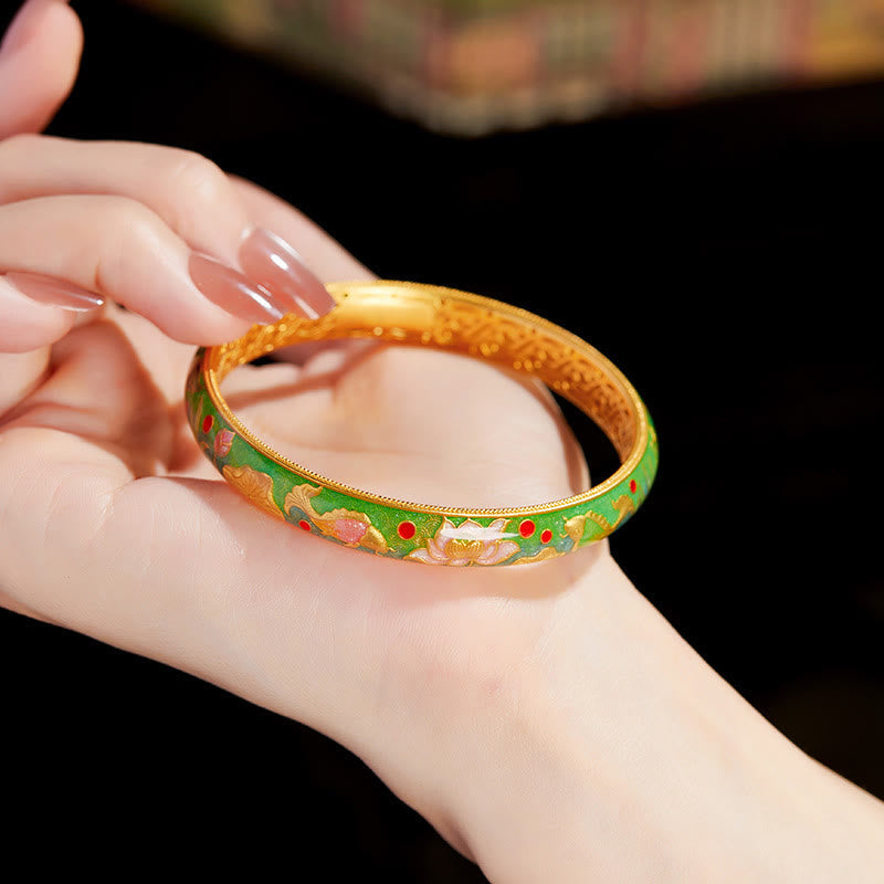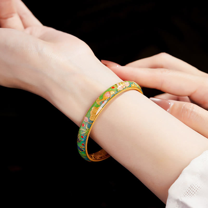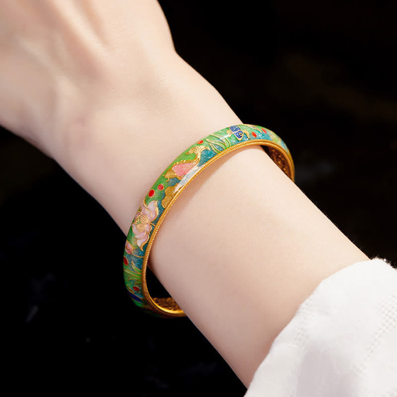 999 Sterling Silver Koi Fish Lotus Hollow Design Wealth Bracelet Bangle 2.28 IN (58 MM)