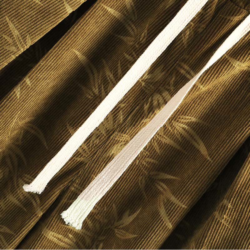 Bamboo Leaves Corduroy Drawstring Cotton Men's Wide Leg Pants With Pockets