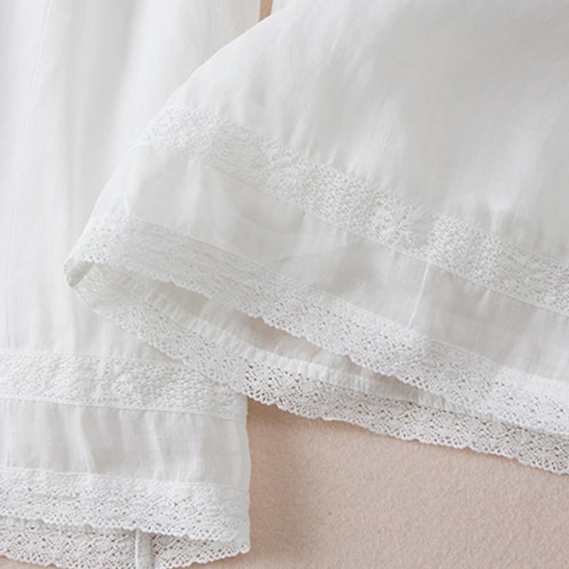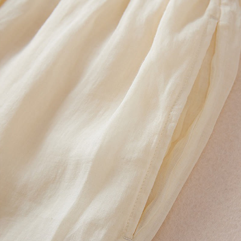 Casual Lining Design Cotton Women's 7-8 Length Wide Leg Pants With Pockets