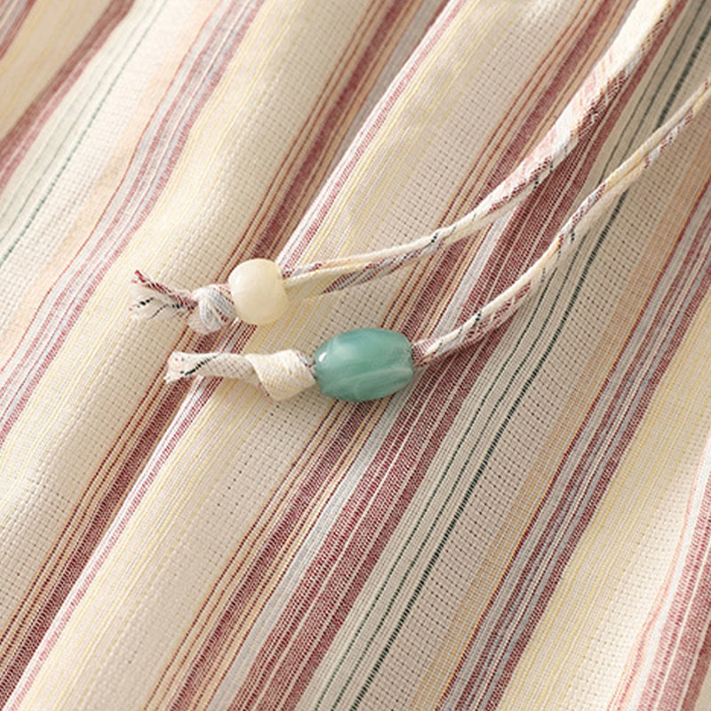 Color Vertical Stripes Cotton Women's Wide Leg Pants With Pockets