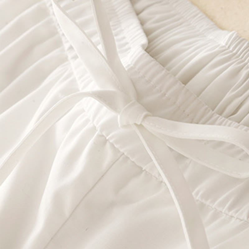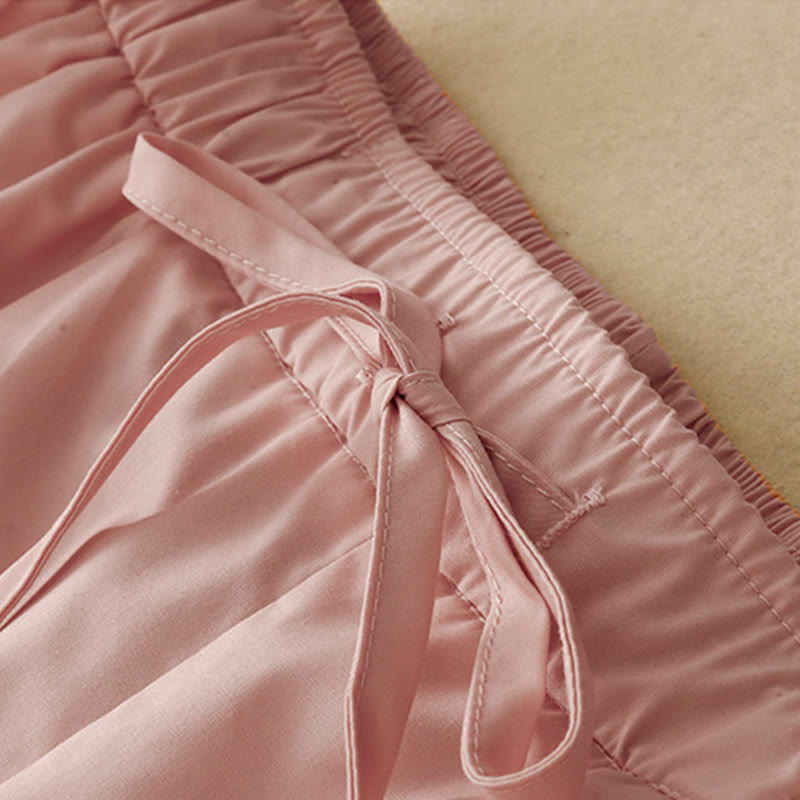 Commute Plain Lace Patchwork Drawstring Design Women's Wide Leg Cotton Ankle-Length Pants With Pockets