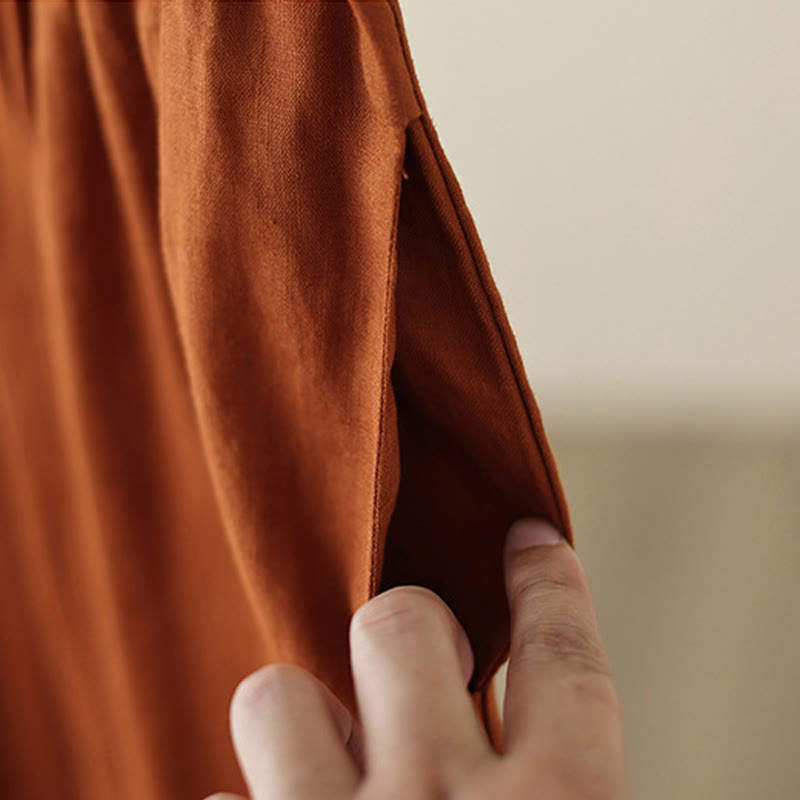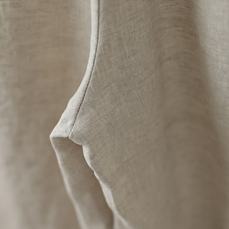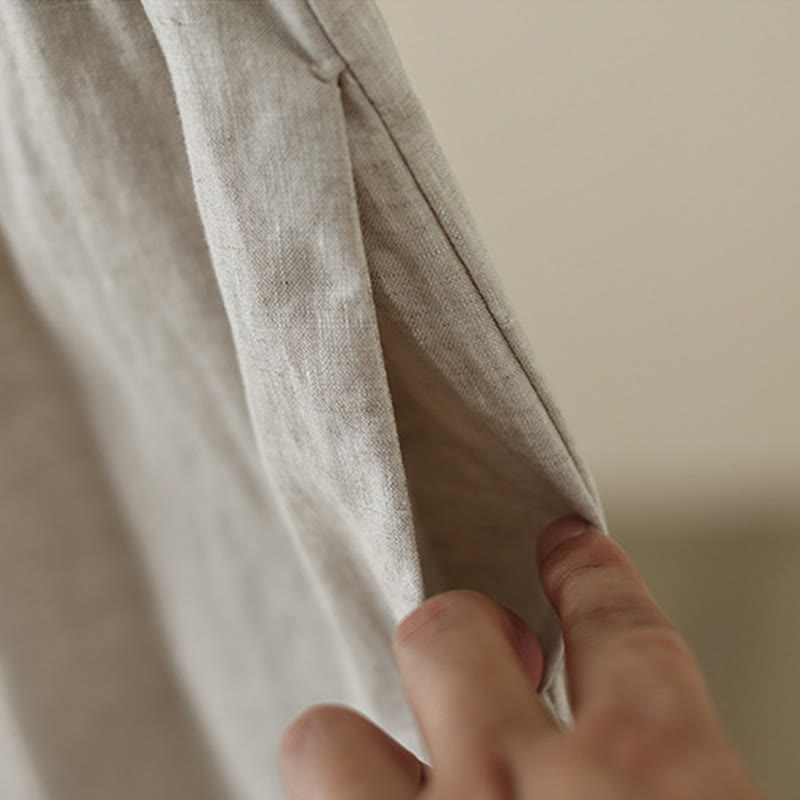 Commute Retro Plain Lace Patchwork Design 7-8 Length Women's Wide Leg Cotton Pants With Pockets