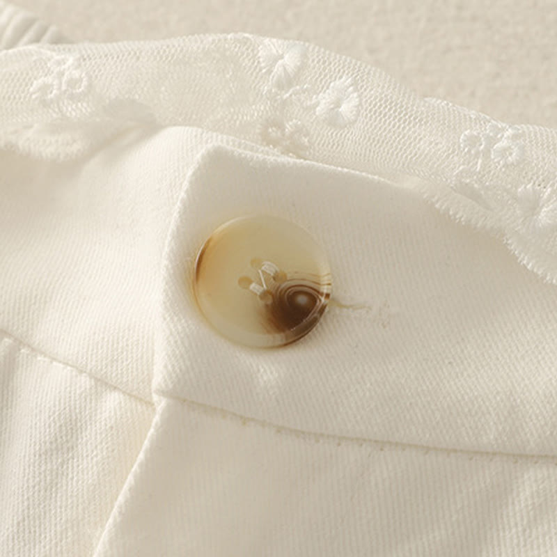 Daily Solid Color Lace Belt Women's Wide Leg Cotton Pants With Pockets