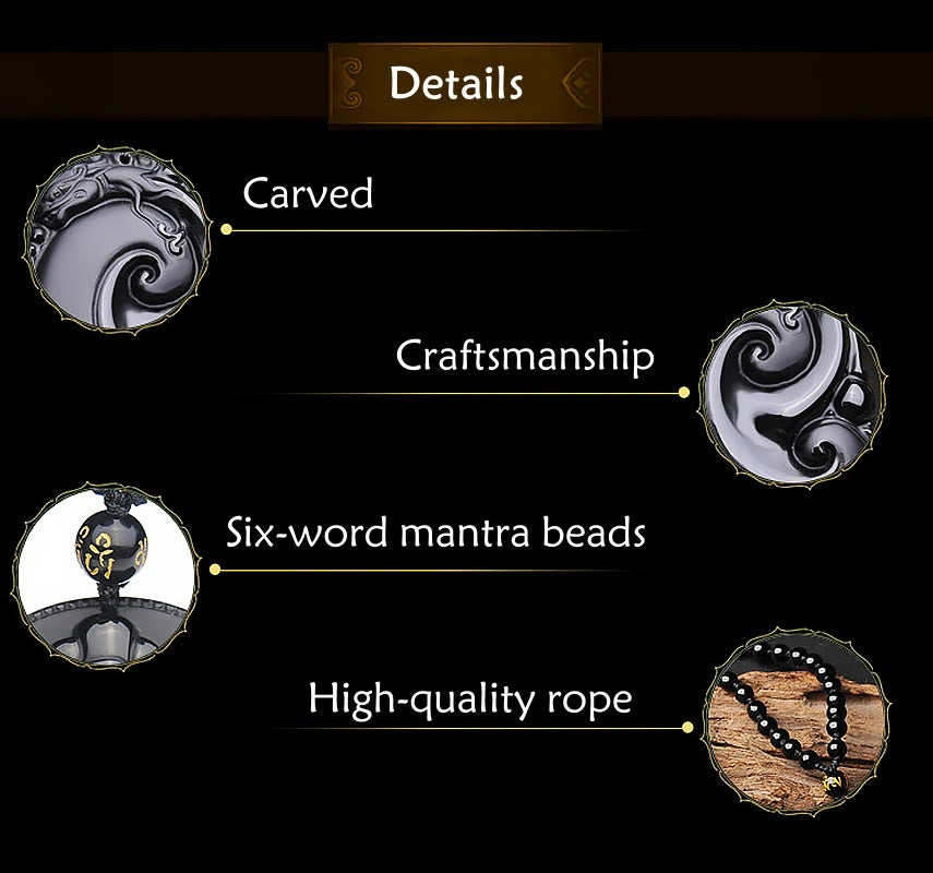 Natural Black Obsidian PiXiu Oval Pattern Strength Necklace Pendant