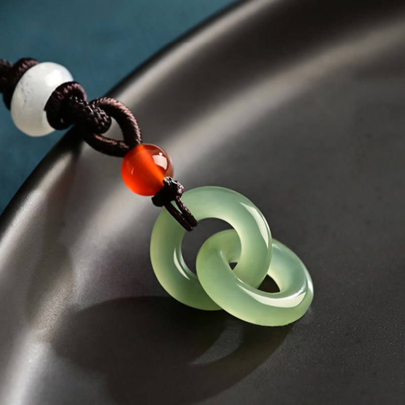 Natural Hetian Cyan Jade White Jade Double Peace Buckle Success Necklace Pendant