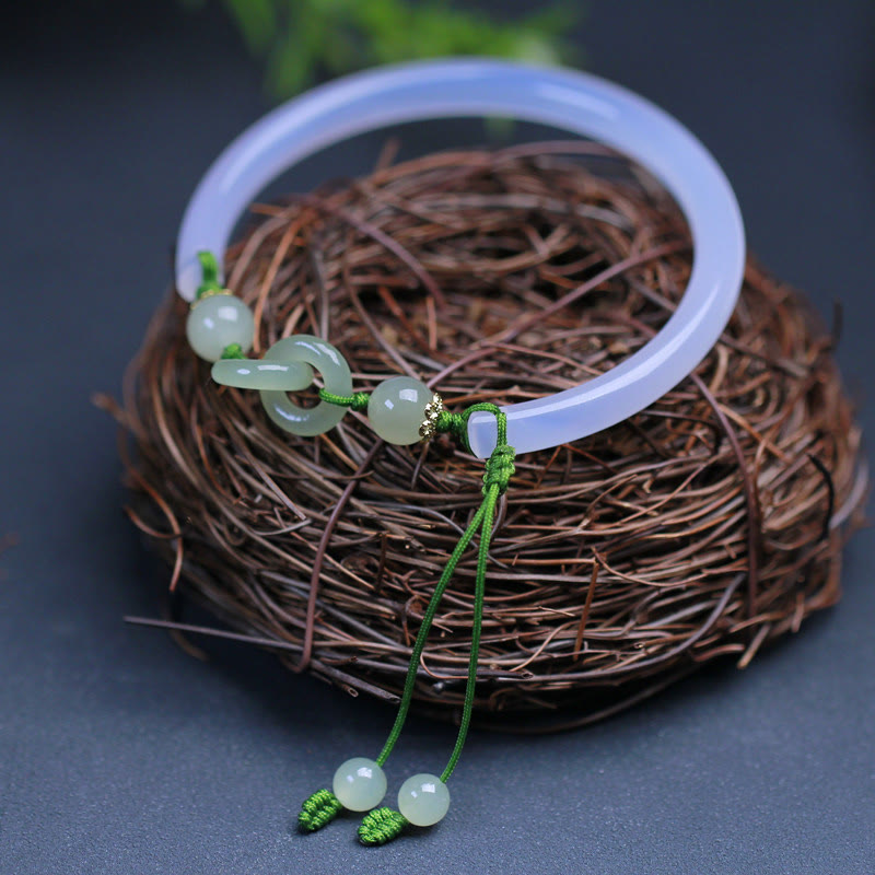 Natural White Agate Hetian Jade Beads Interlocking Positive Bracelet Bangle