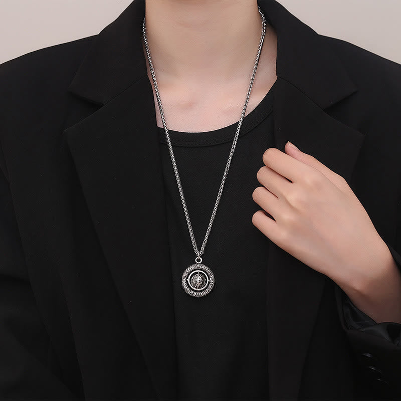 One's Luck Improves Design Pattern Copper Rotatable Necklace Pendant