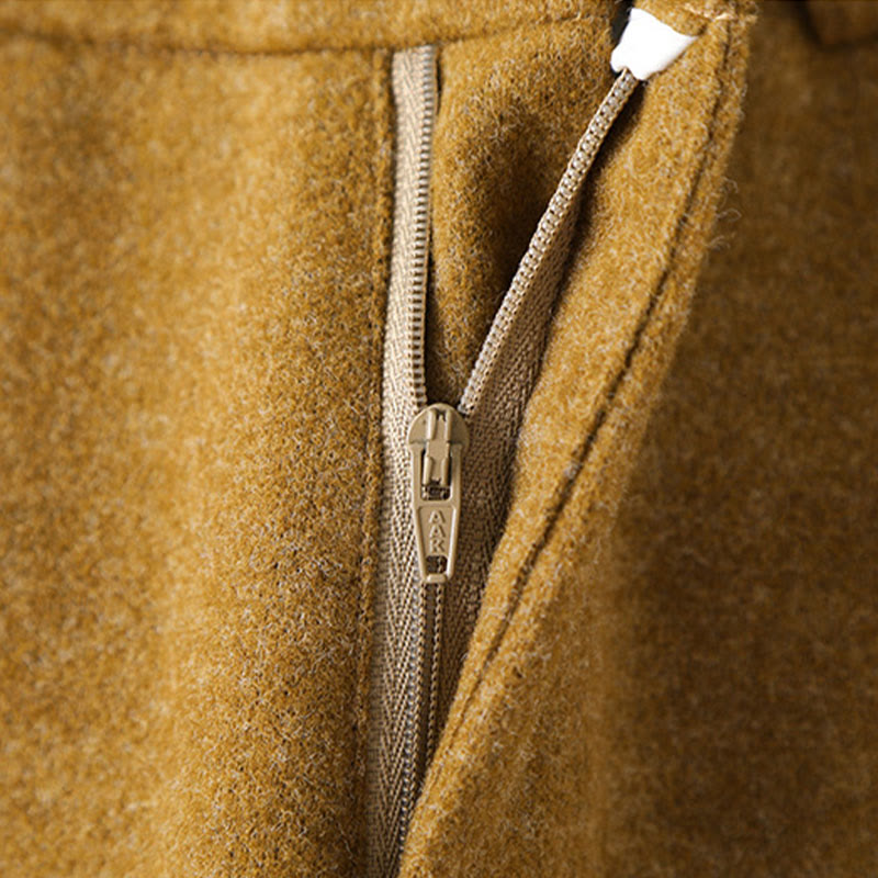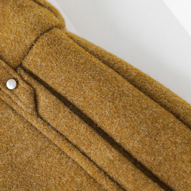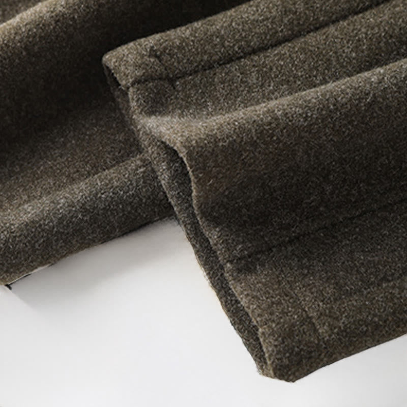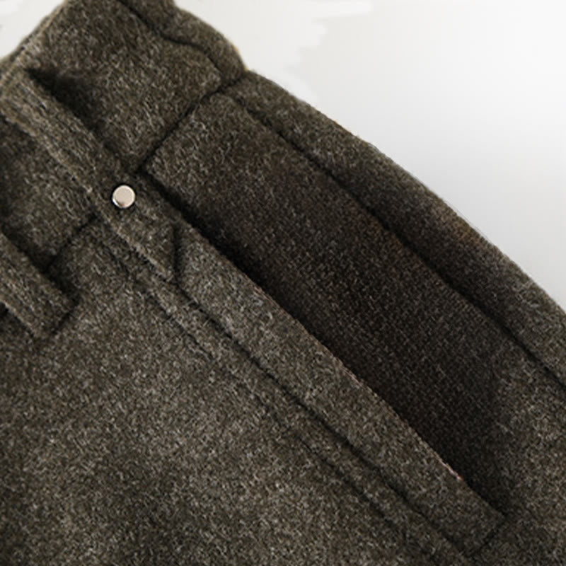 Plain Button Cotton Thick Wool Women's Wide Leg Pants With Pockets