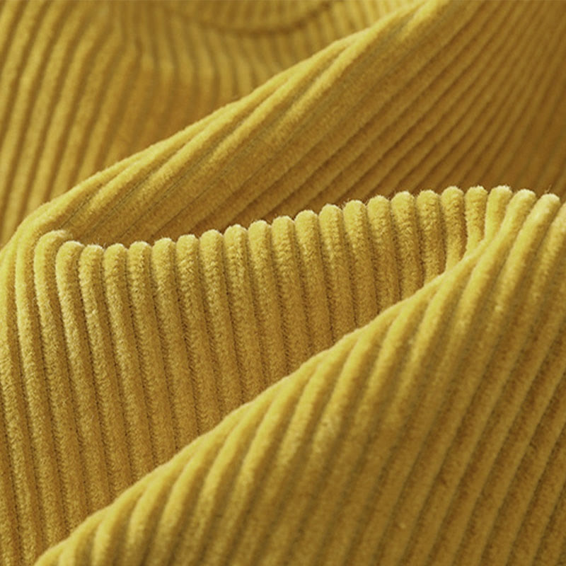 Plain Elastic Waist Women's Cropped 7-8 Length Wide Leg Corduroy Pants
