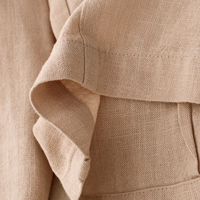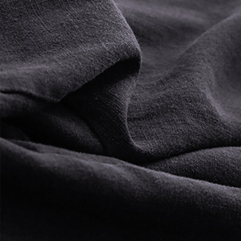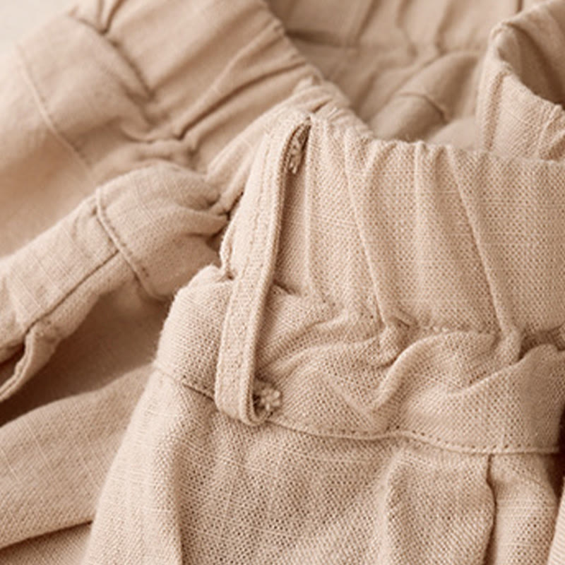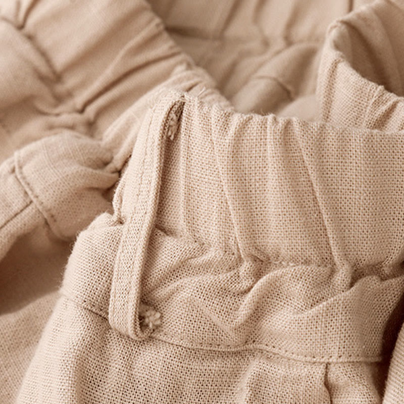 Solid Color Cotton Women's Wide Leg Pants With Pockets