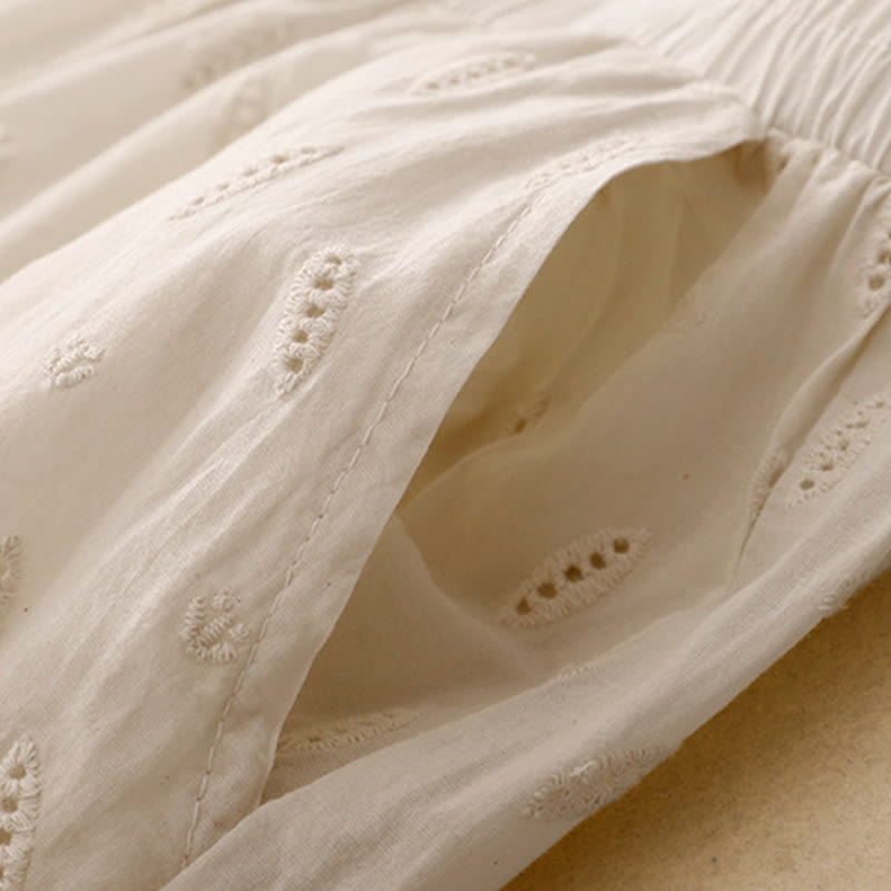 Summer Vintage Embroidery Lace Hem Patchwork Design Women's Wide Leg Cotton Pants With Pockets
