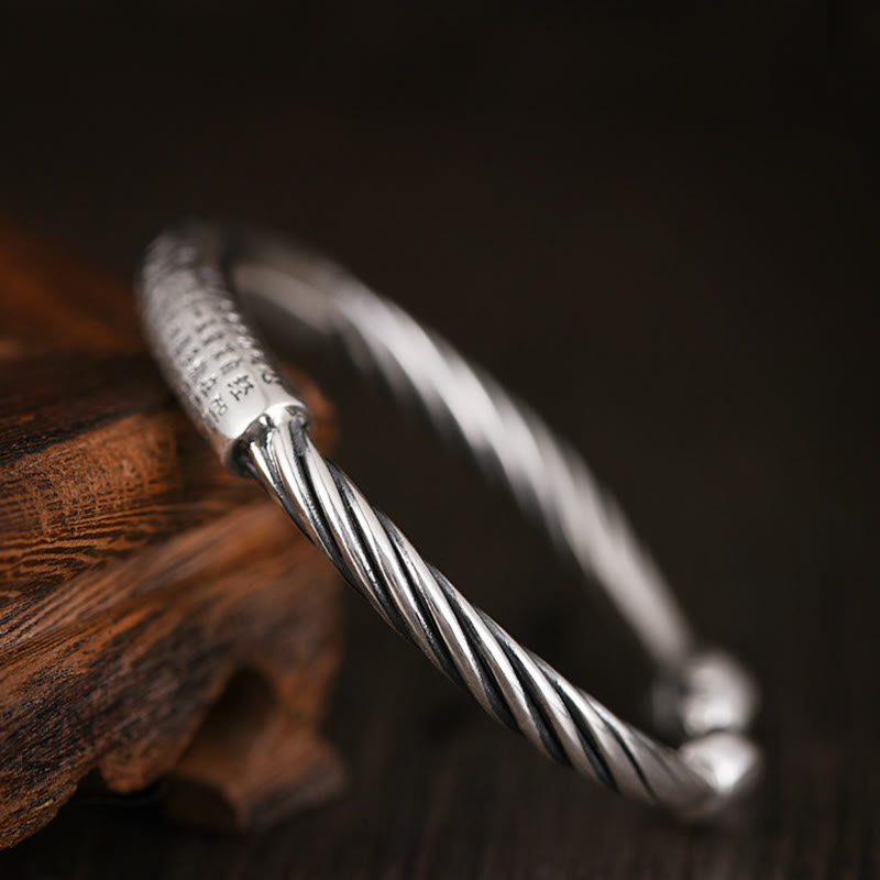 Tibetan Om Mani Padme Hum Heart Sutra Purity Cuff Bracelet