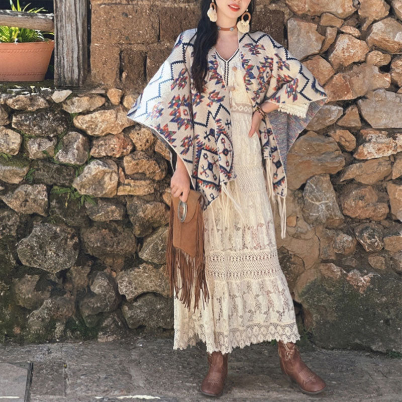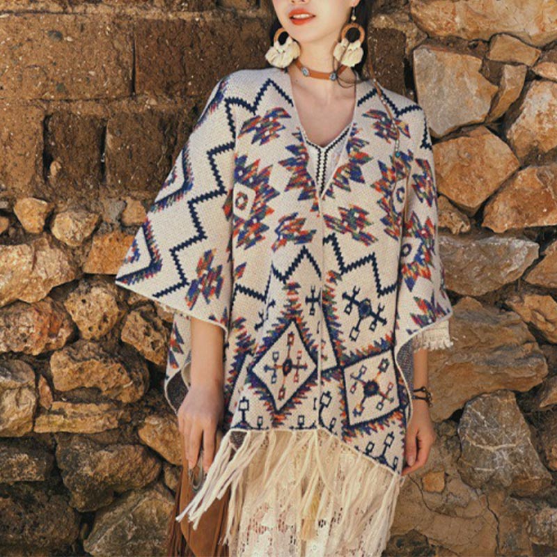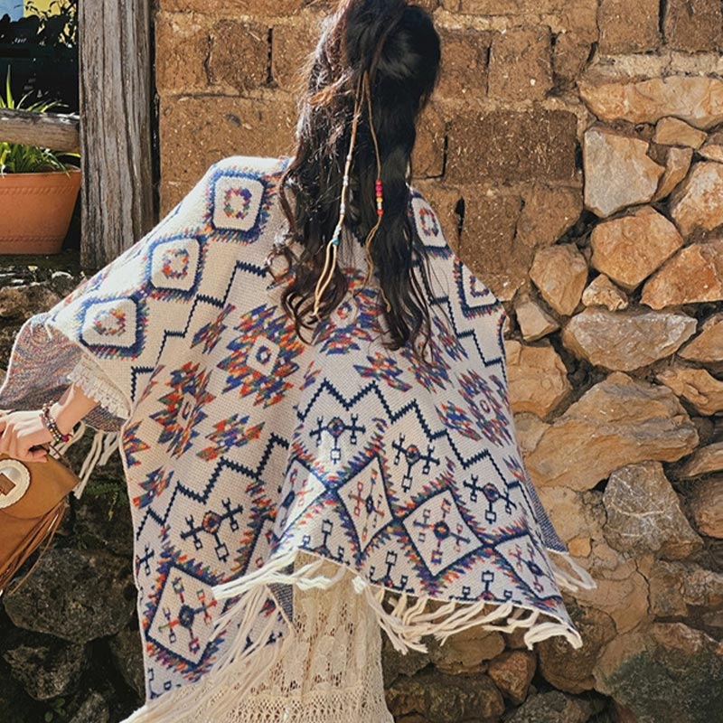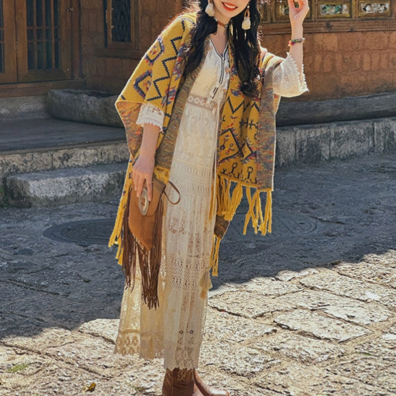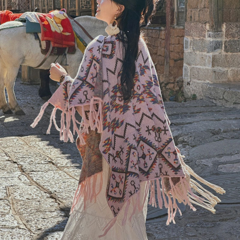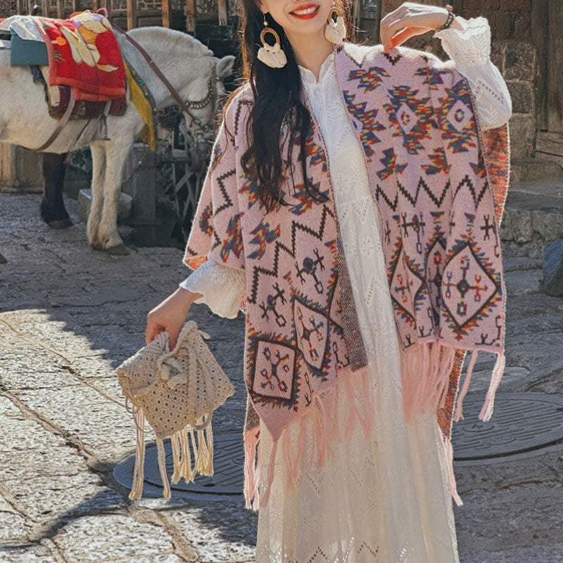 Tibetan Shawl Striped Geometry Pattern Winter Cozy Travel Knitted Scarf Wrap