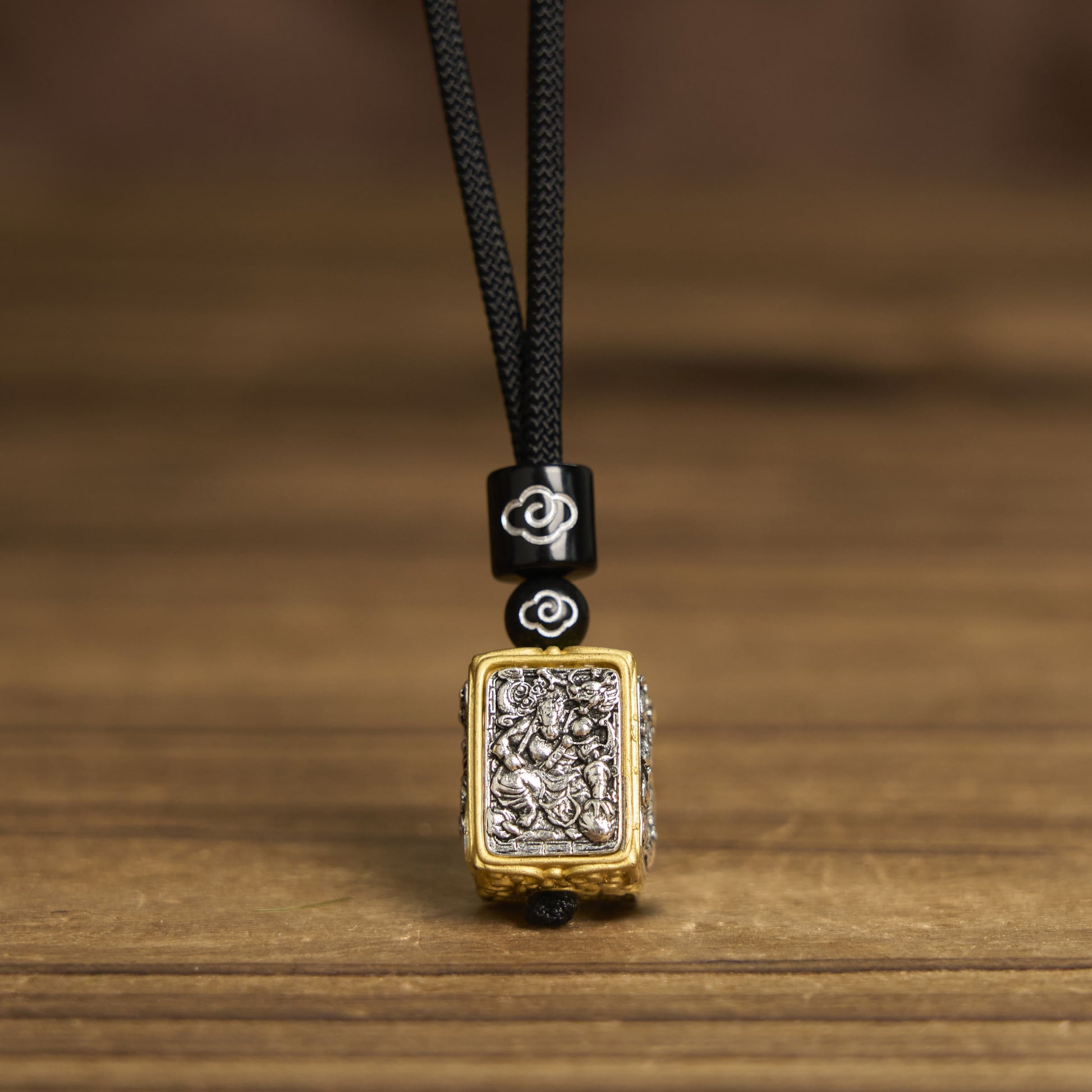 Tibetan Zakiram Goddess Of Wealth Protection Rope Square Necklace Pendant