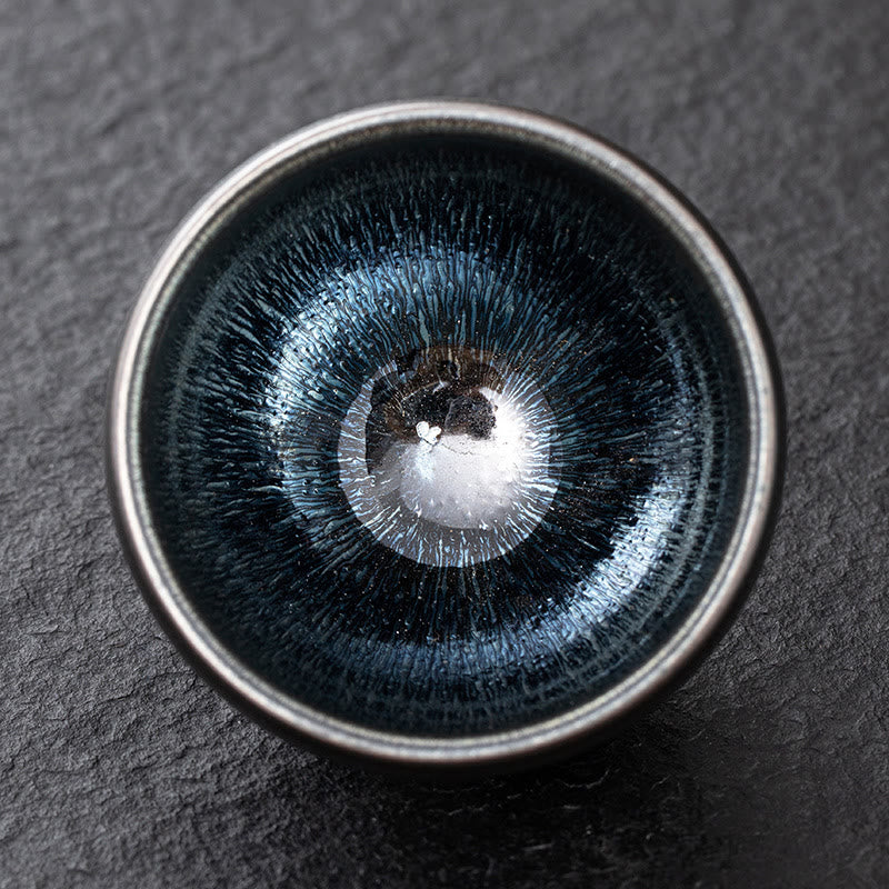 Vintage Chinese Silver Blue Jianzhan Kiln Change Porcelain Teacup Kung Fu Tea Cup
