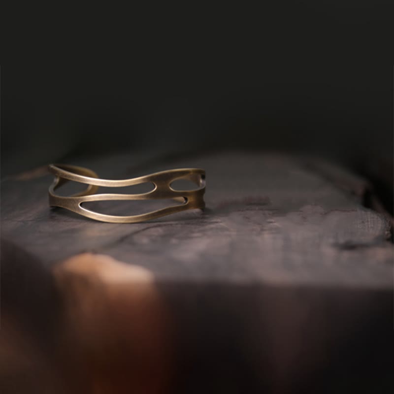 Vintage Curved Copper Brass Wealth Adjustable Cuff Bracelet Bangle
