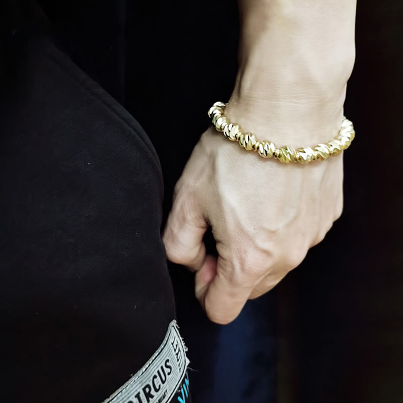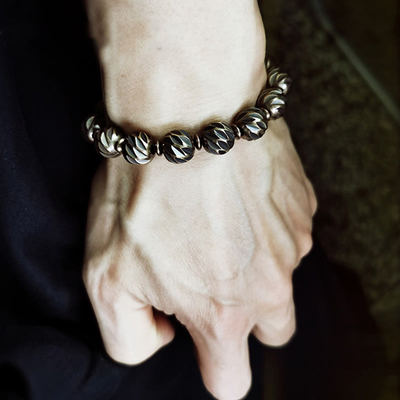 Vintage Distressed Knife Carving Pattern Copper Brass Beads Wealth Bracelet