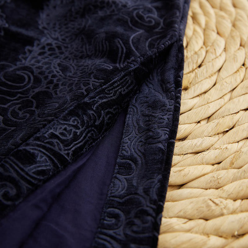 Vintage Fall Winter Chinese Frog-Button Tang Suit Men's Dragon Jacquard Robe With Pockets