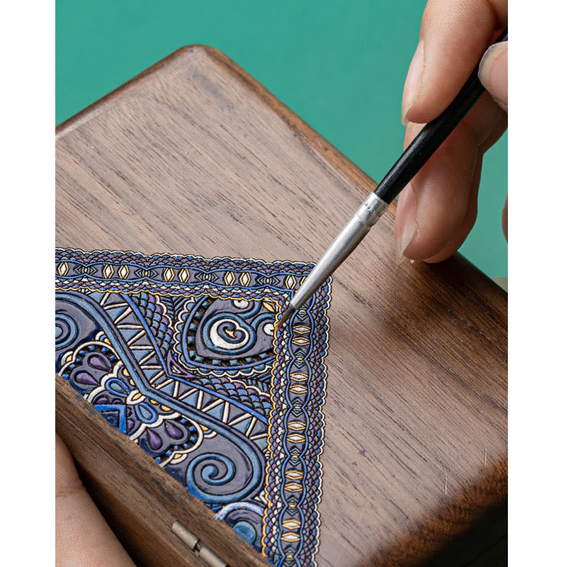 Vintage Handmade Black Walnut Wood Jewelry Storage Box With Mirror