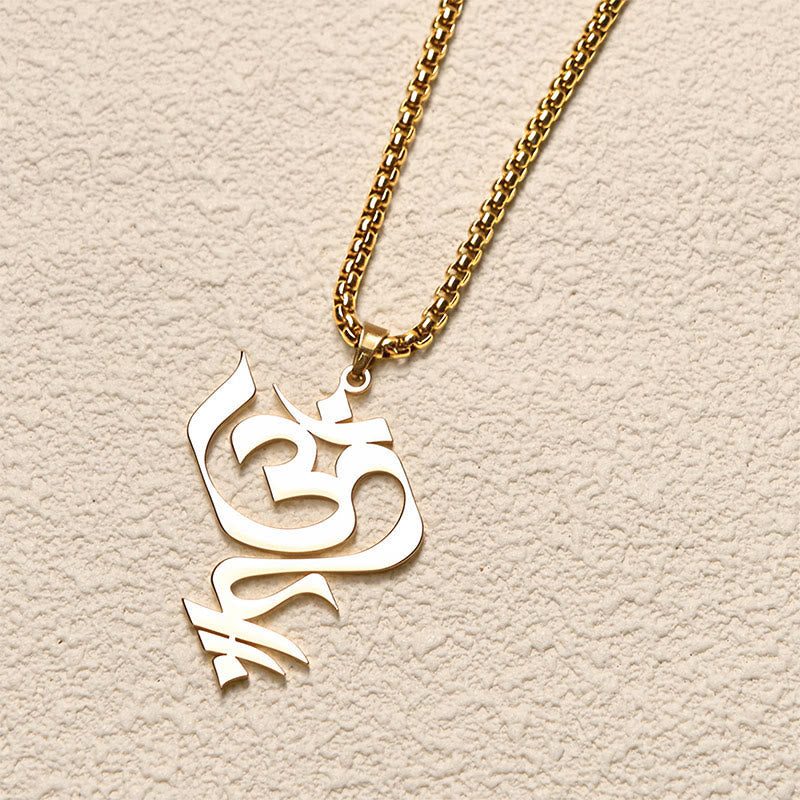 Vintage OM Symbol geometry Design Stainless Steel Connection Necklace Pendant