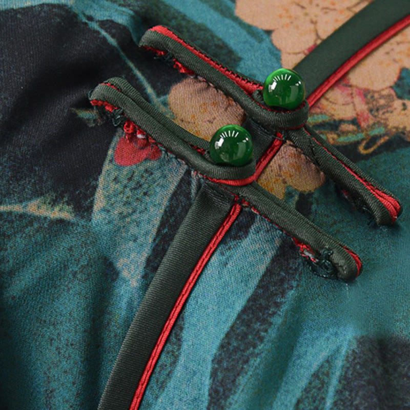 Vintage Pink Flowers Print Cheongsam Dress Women's Qipao Dress