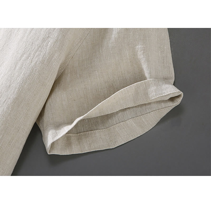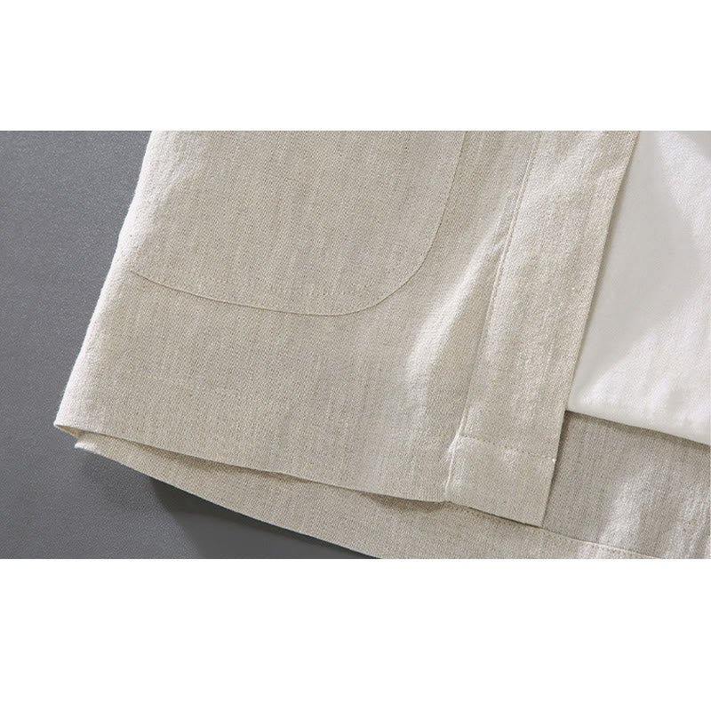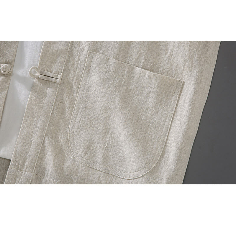Vintage Plain Tang Suit Chinese Frog-Button Cotton Linen Men's Shirt With Pockets