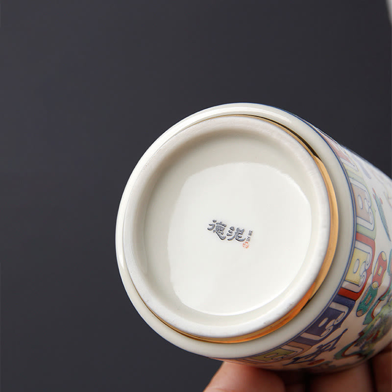 Vintage Plum Blossom Pine Bamboo Phoenix Kirin Lion Dancing Ceramic Teacup Tea Cups