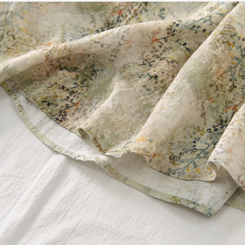 Vintage Printing Women's Linen 7-8 Length Skirt With Pockets