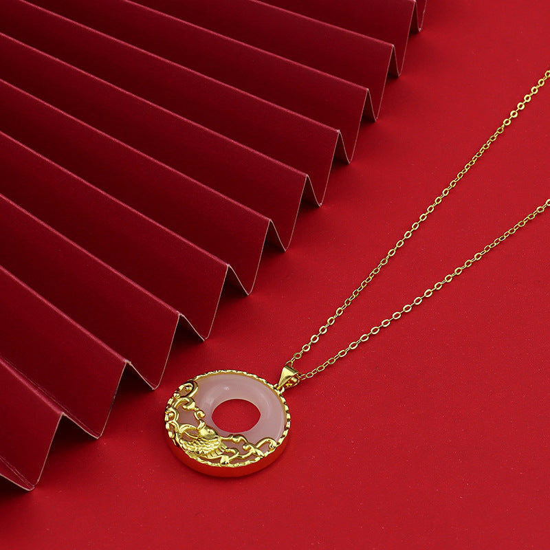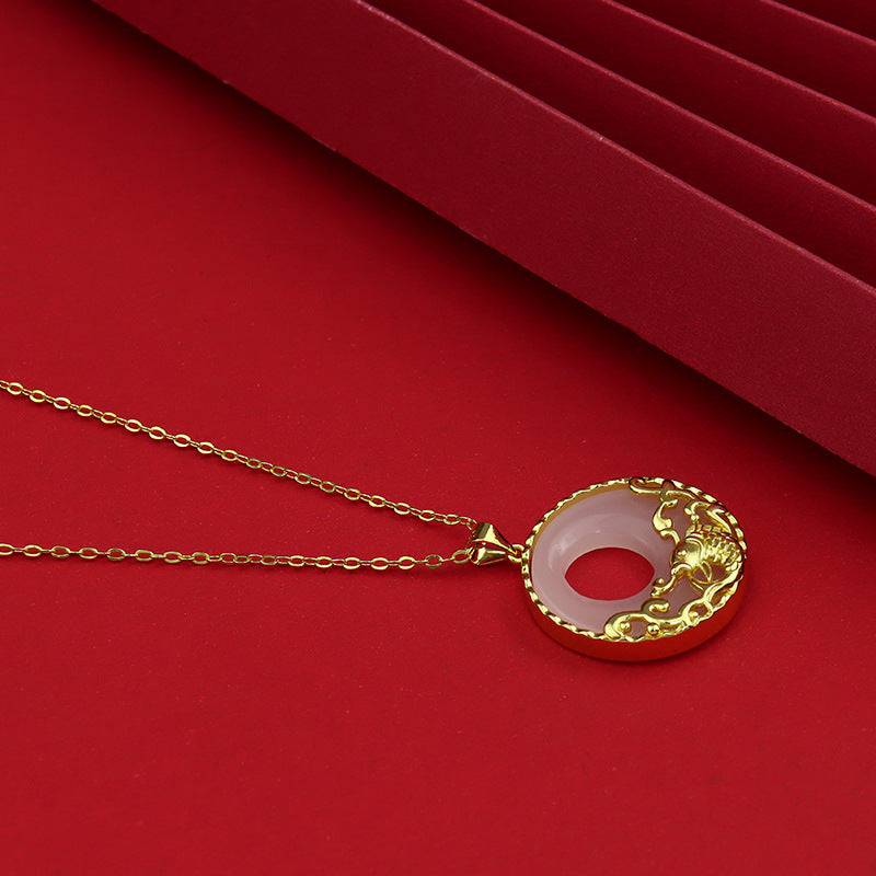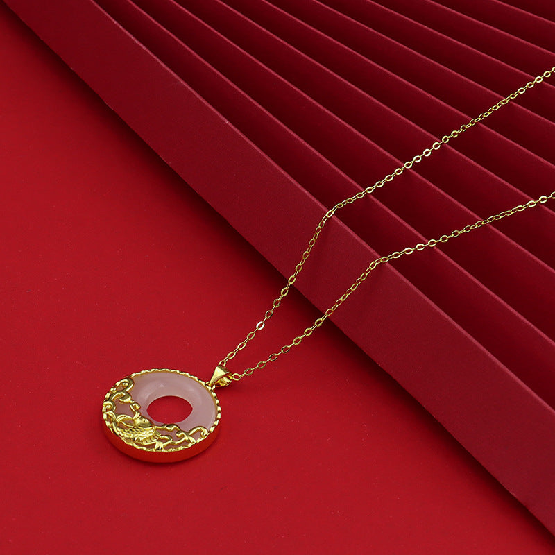 White Jade Koi Fish Titanium Steel Prosperity Necklace Pendant