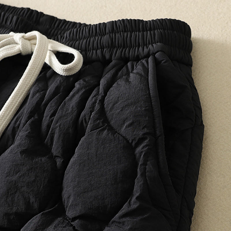 Winter Curved Lines Elastic Waist Drawstring Patchwork Plaid Cotton Thermal Women's Pants With Pockets