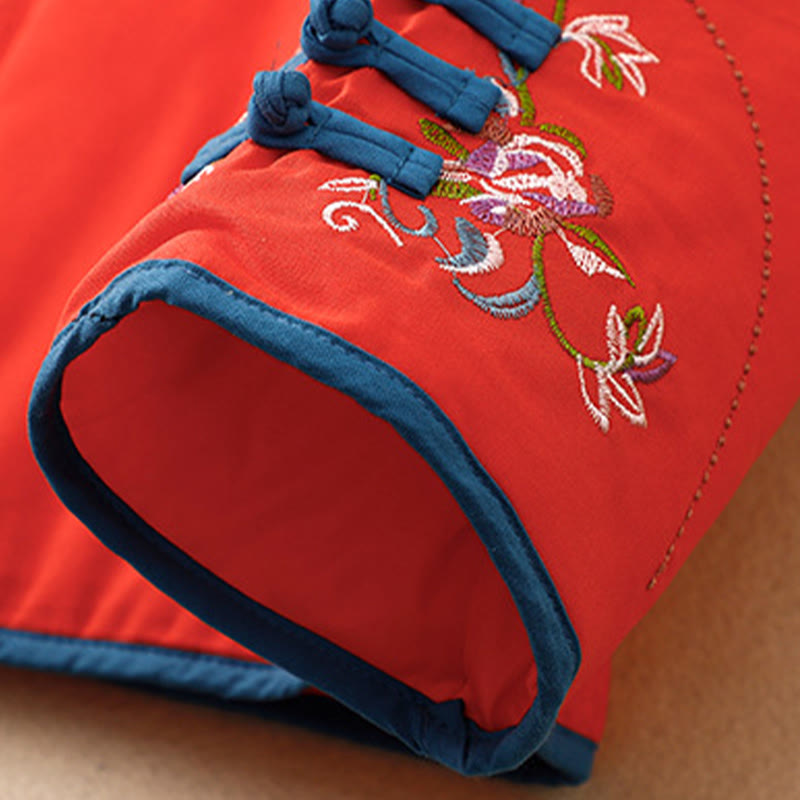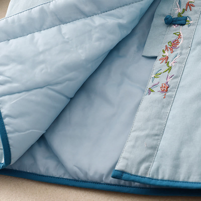 Winter Flower Embroidery Frog-Button Long Sleeve Women's Thermal Jacket