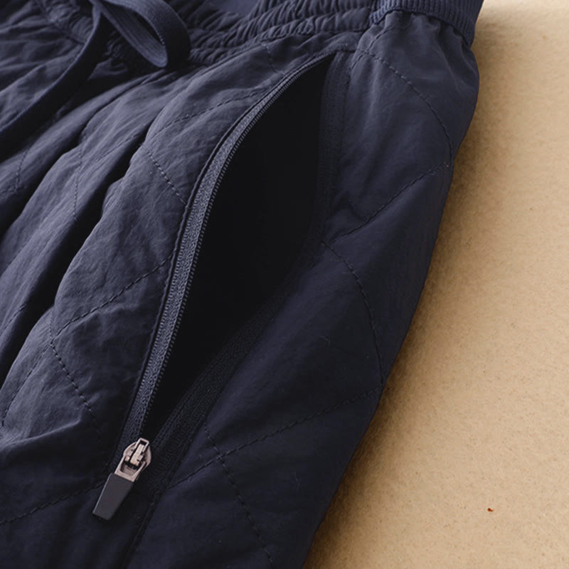 Winter Lines Elastic Waist Drawstring Cotton Thermal Women's Pants With Zipper Pockets
