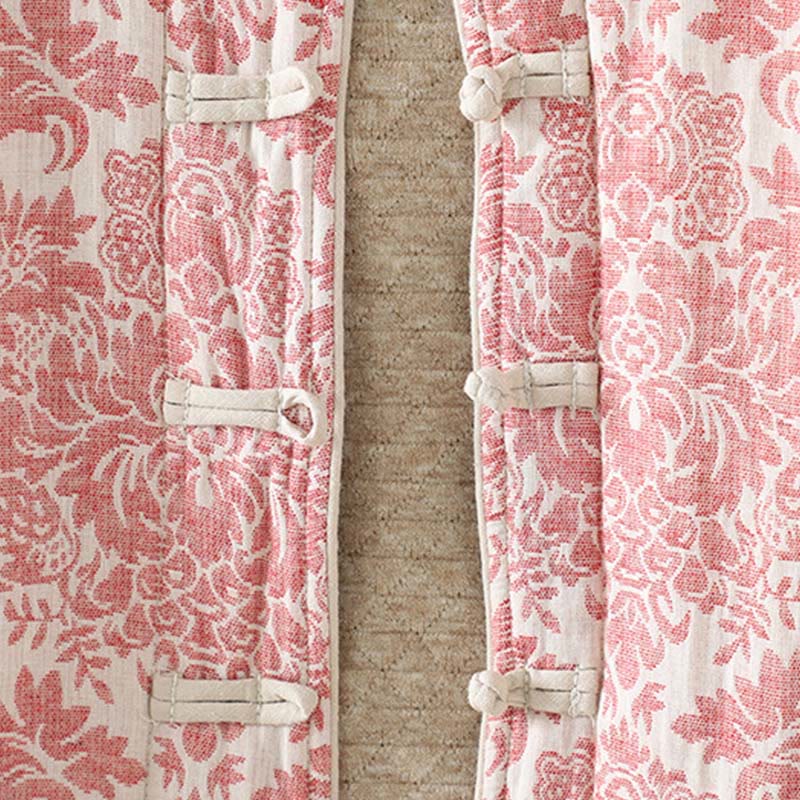 Women's Peony Flowers Frog-Button Design Long Sleeve Thermal Jacket With Pockets
