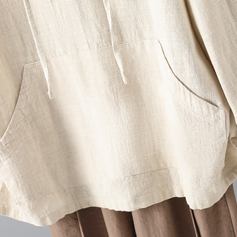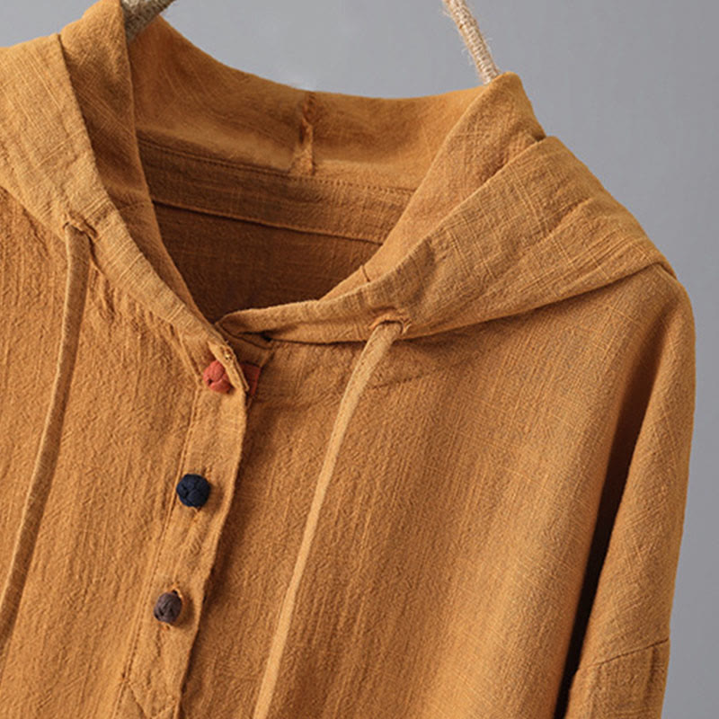Women's Plain Buttons Design Cotton Long Sleeve Hoodie With Pockets
