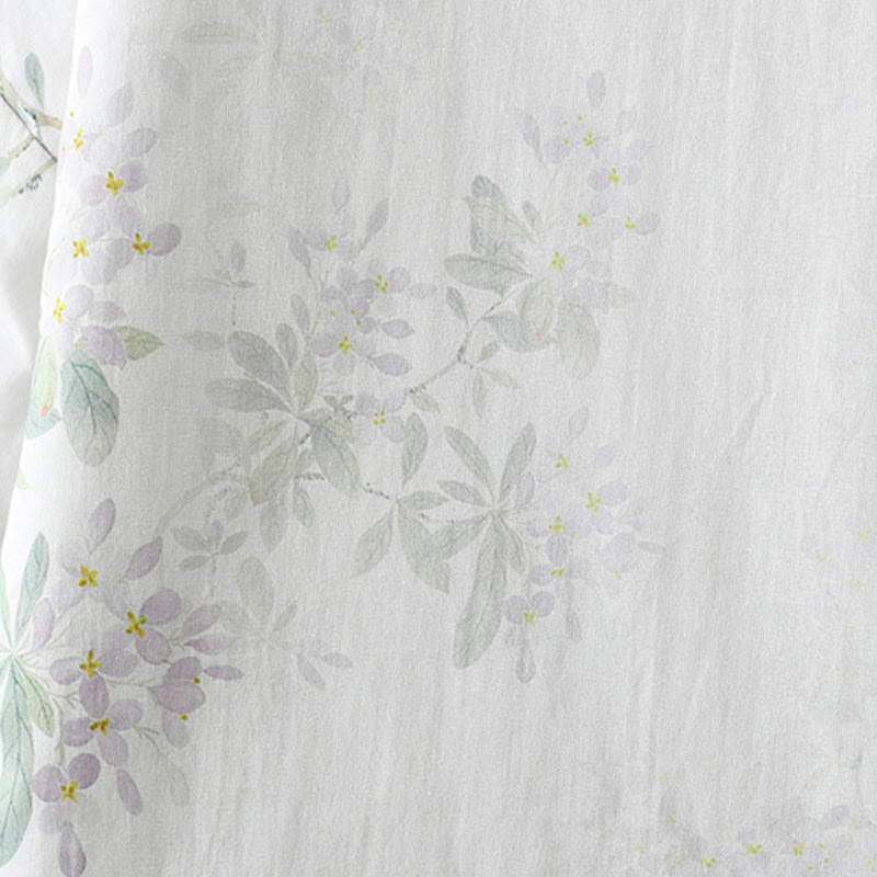 Women's Purple Flower Leaves Frog-Button Design Long Sleeve Thermal Jacket