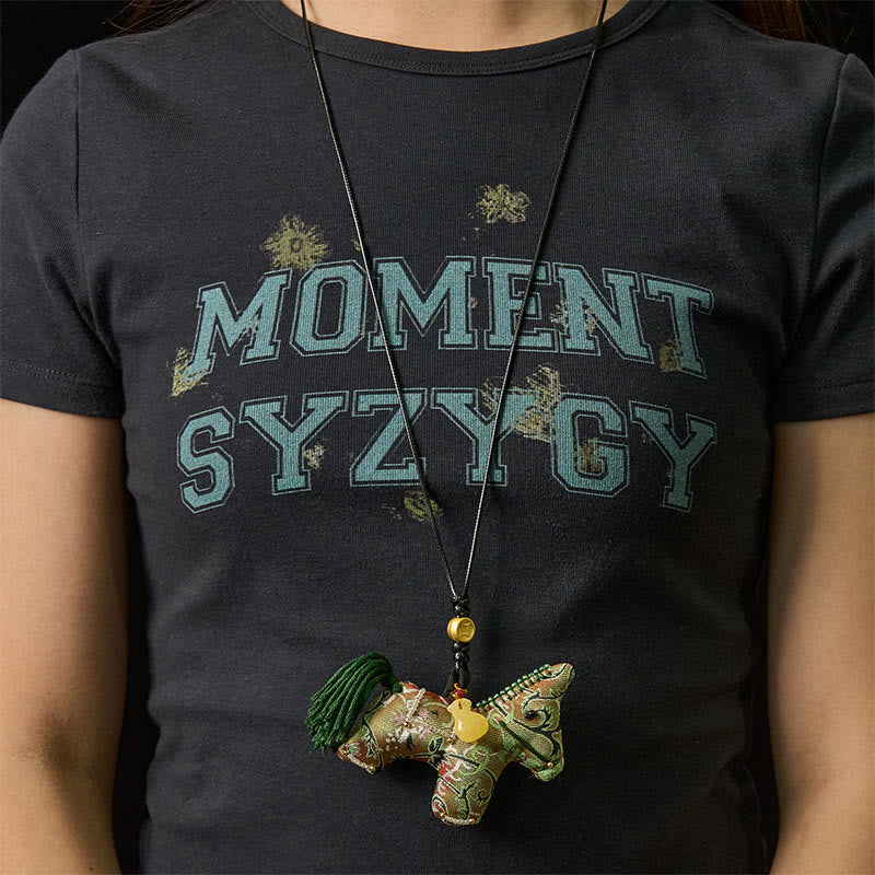 Year of the Horse Shu Brocade Silk Curly Grass Pomegranate Pattern Hanging Decoration