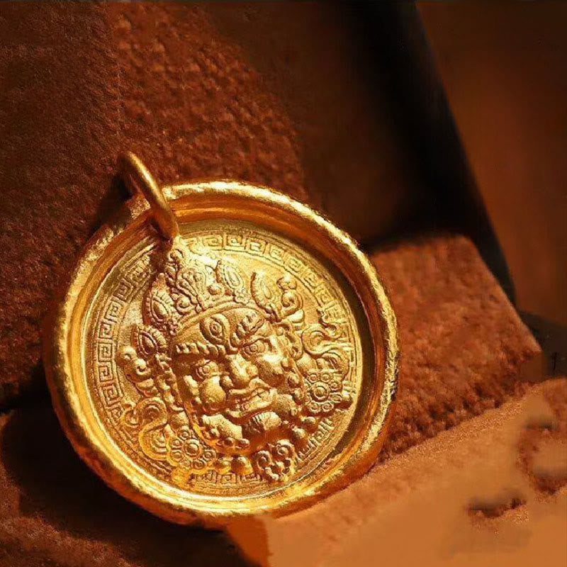 24k Gold Plated Brass Yellow Jambhala Prosperity Protection Chain Pendant Necklace